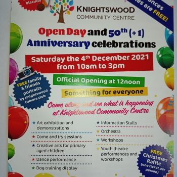 Something for everyone Knightswood Community Centre Open Day and 50th (+ 1) Anniversary celebrations, Saturday the 4th December 2021 from 10am to 3pm  Official Opening at 12noon, Come along…